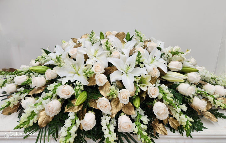 This arrangement is thoughtfully designed to express heartfelt sympathy and honor cherished memories.