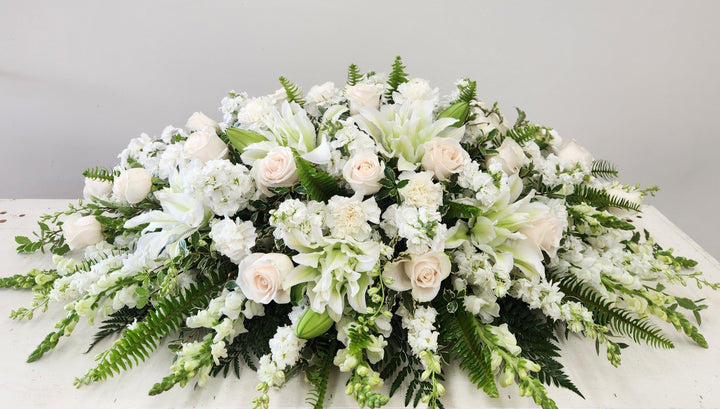 This arrangement is thoughtfully designed to express heartfelt sympathy and honor cherished memories.