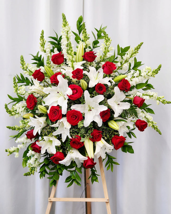 This arrangement is thoughtfully designed to express heartfelt sympathy and honor cherished memories.